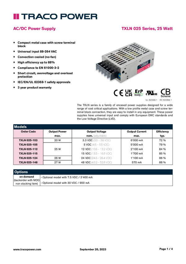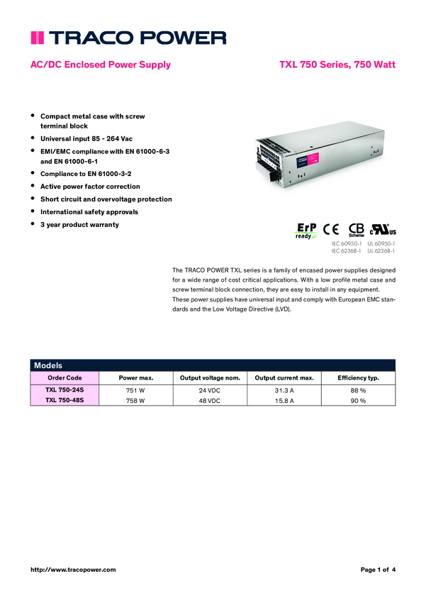 Zasilacz TracoPower TXL 750-24S 24 V/DC 31.3 A 750 W