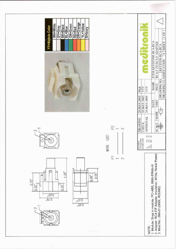 Moduł keystone RCA gniazdo na gniazdo kolor żółty