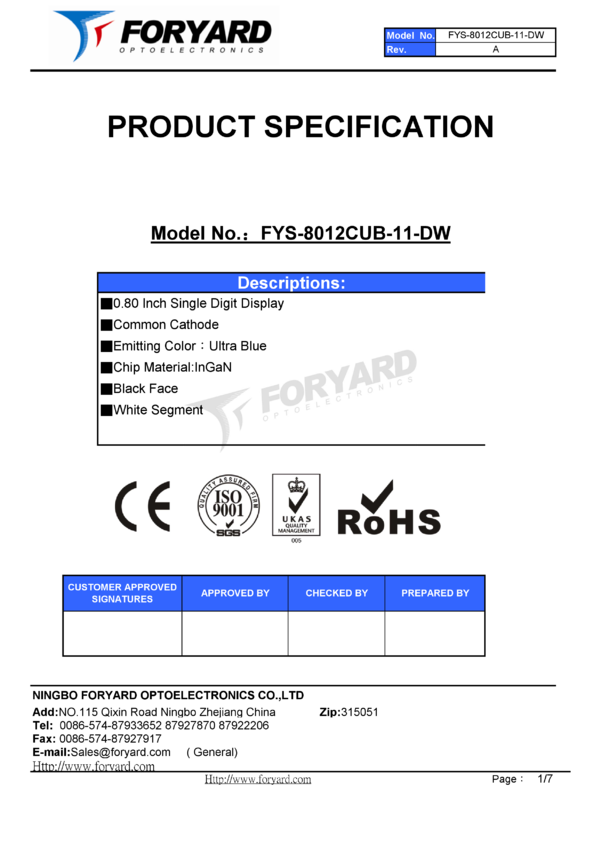 Wyświetlacz LED, żółty, , 1-cyfra, 0.80" (20.4mm), wspólna katoda, czarne tło, dyfuzyjny, statyczny, 20x27.7mm, wyprowadzenia PIN typu E1, Foryard