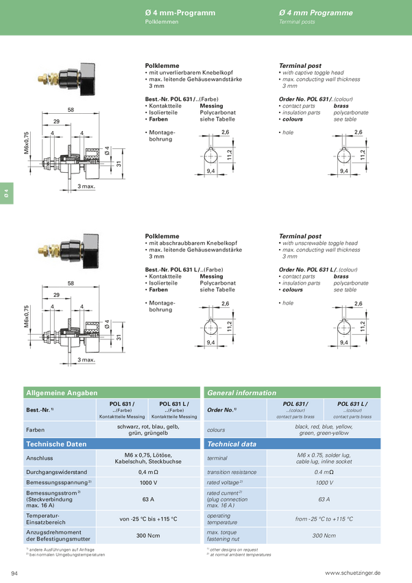 Schützinger POL 631 L / RT Zacisk biegunowy 1 szt.