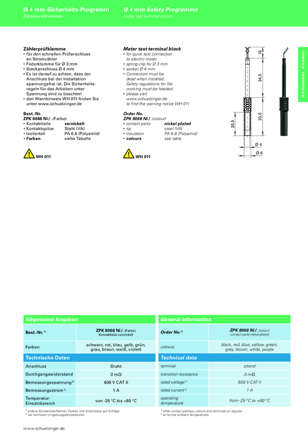 Zacisk testowy miernika Schützinger ZPK 8066 Ni / GR 10 szt.