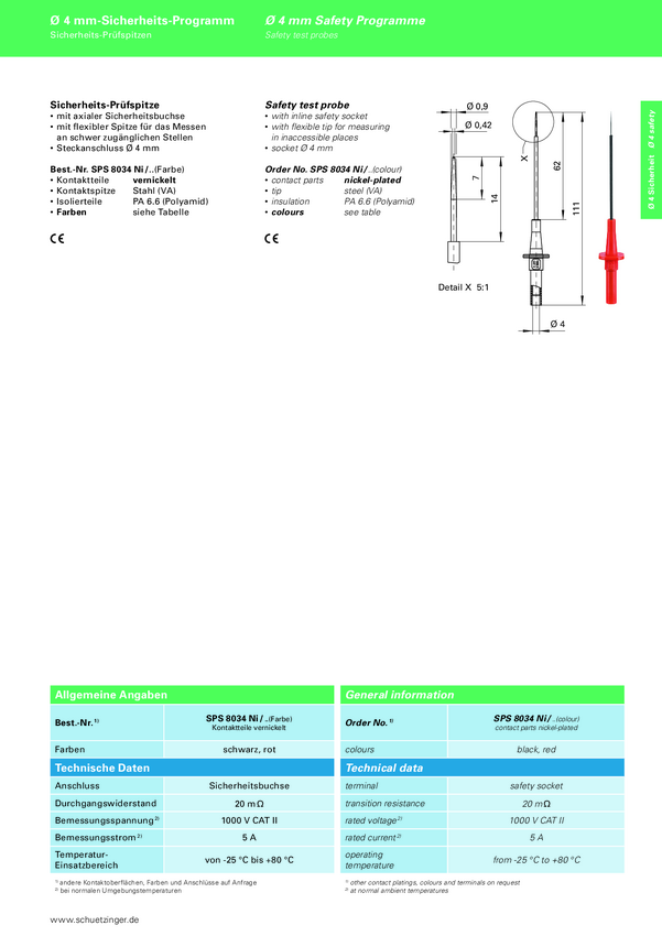 Zabezpieczona końcówka pomiarowa Schützinger SPS 8034 Ni / RT 1 szt.