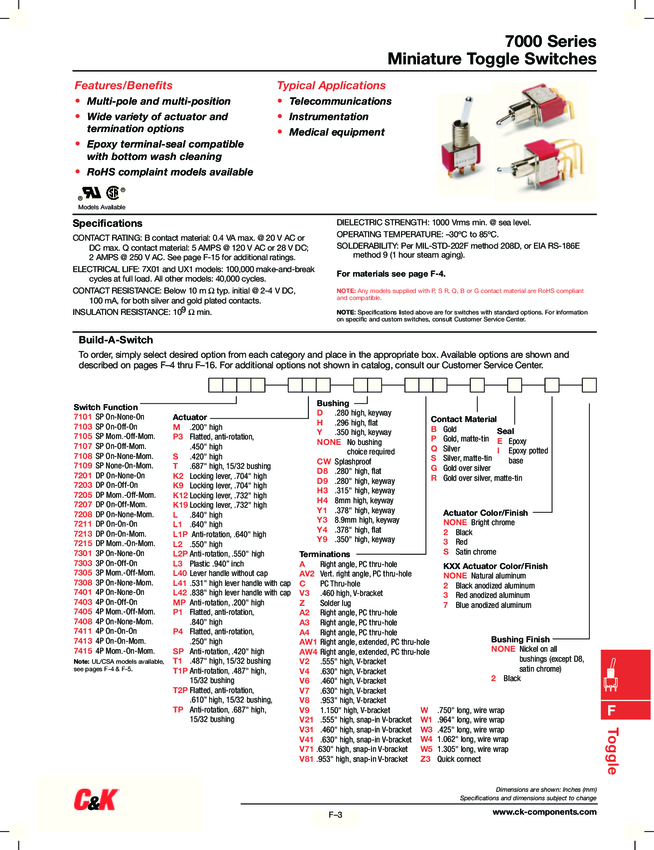 Switch Toggle ON None ON SPDT Round Toggle PC Pins 20VAC 20VDC 0.4VA PC Mount with Bracket