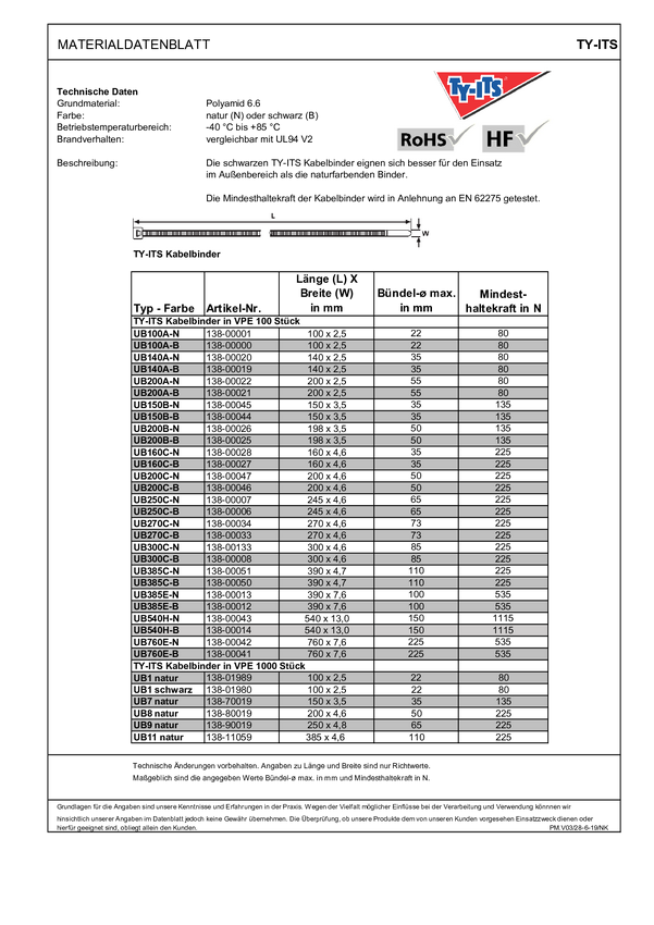 Opaska kablowa HellermannTyton UB1-PA66-BK 138-01980, 100 mm, poliamid 6.6, 1000 szt.