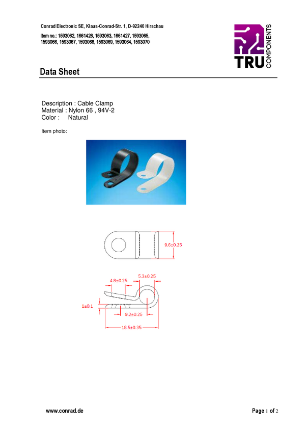 Zacisk mocujący TRU COMPONENTS TC-UC0203 1593062, 3 mm (max), 1 szt.