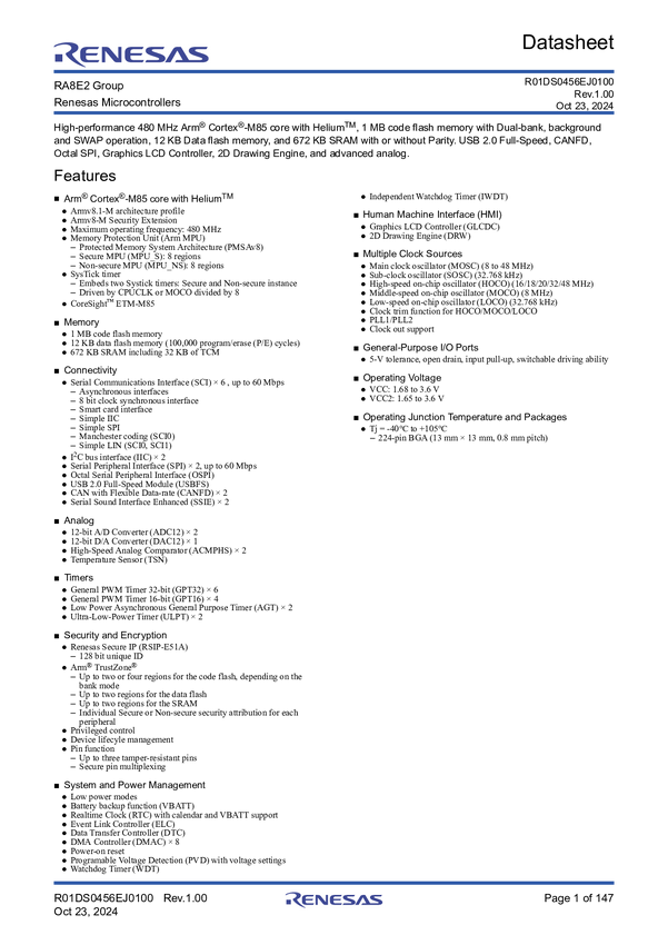 1GHz Arm Cortex-M85 and Cortex-M33 Dual-Core High-Performance MCU