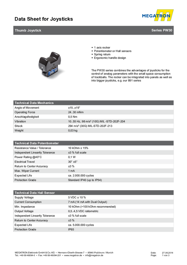 Potencjometr See-Saw-Motion; uchylny; 0,1W; tol.15%' lin 3% kąt.el.30 st; sprężyna powrotna do środka albo do boku; możl iwy Center Tap; różne gałki; Wiele wersji mamy ze składu.