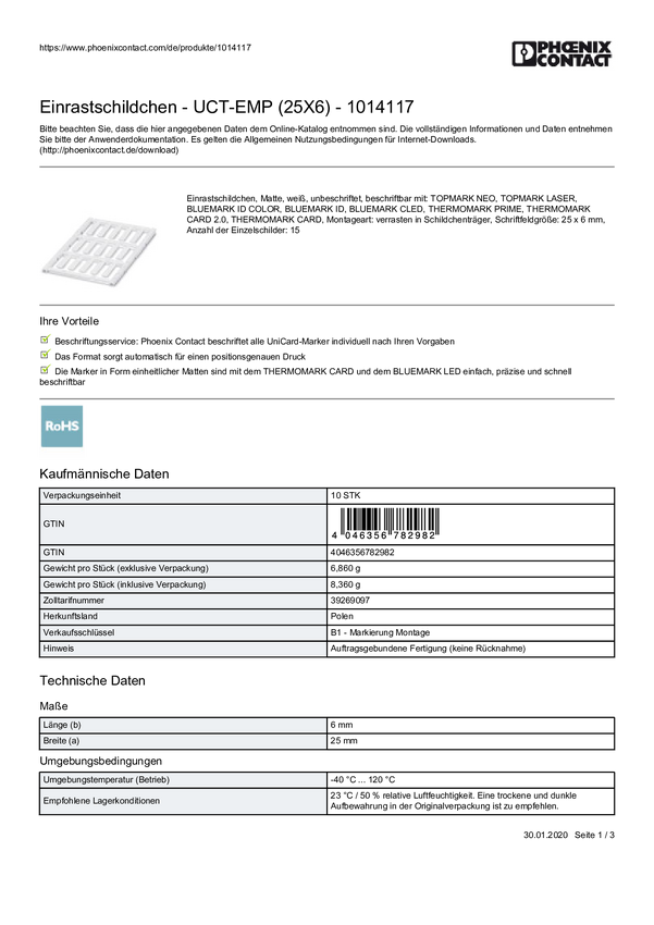 Phoenix Contact 1014117 UCT-EMP (25X6) Tabliczka do etykietowania Sposób montażu: blokada biały Ilość znaczników: 150 10
