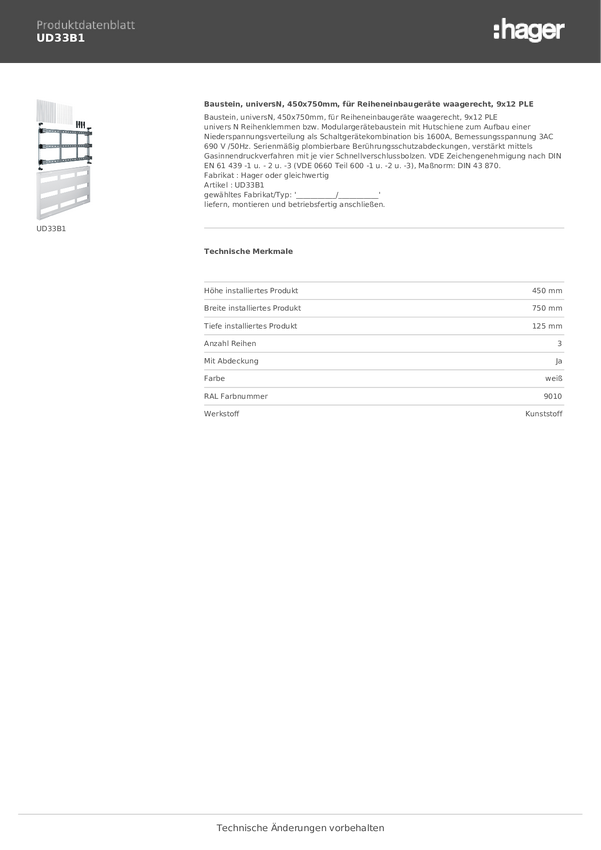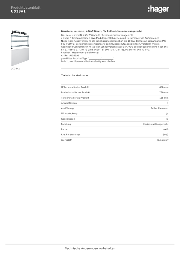 Hager UD33A1N Moduł tworzywo sztuczne biały 1 szt.