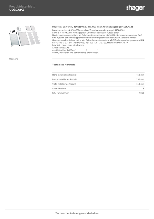 Hager UD31APZ Moduł tworzywo sztuczne biały 1 szt.