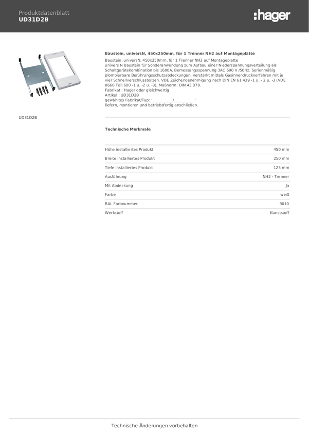 Hager UD31E1N Moduł czysty biały (ral 9010) 250 A 1 szt.