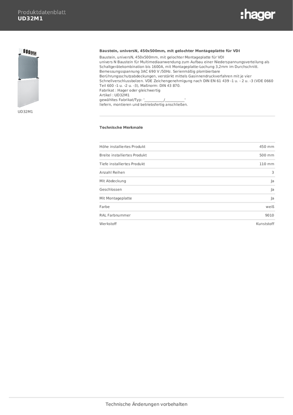 Hager UD32M1 Moduł tworzywo sztuczne biały 1 szt.