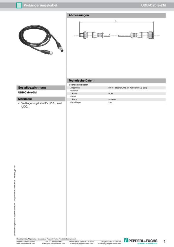 Pepperl+Fuchs 120359 Przedłużacz UDB-Cable-1M 1 szt.