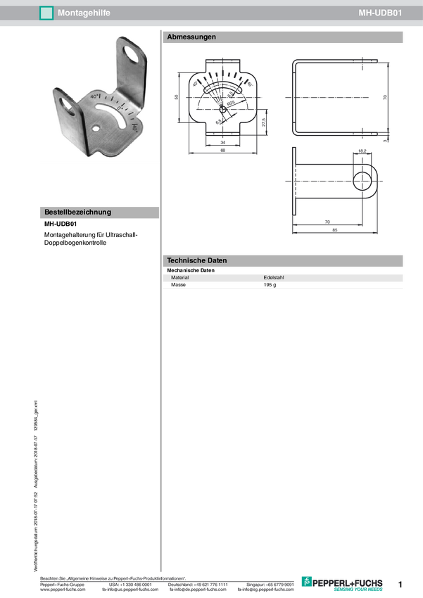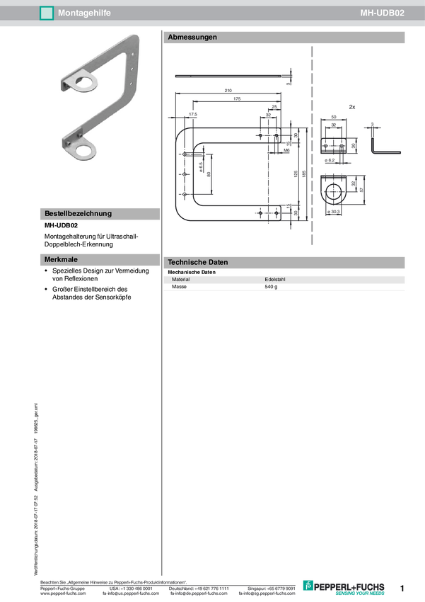 Pepperl+Fuchs 198625 Pomoc montażowa MH-UDB02 1 szt.