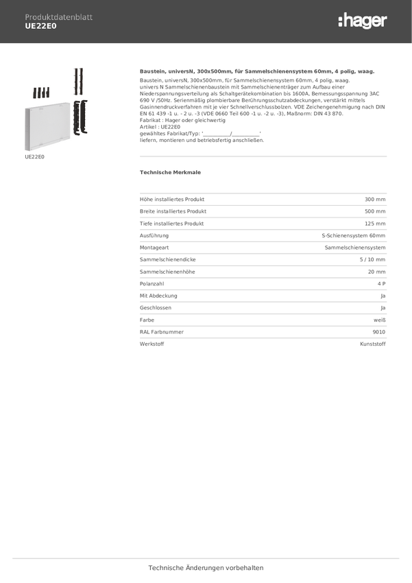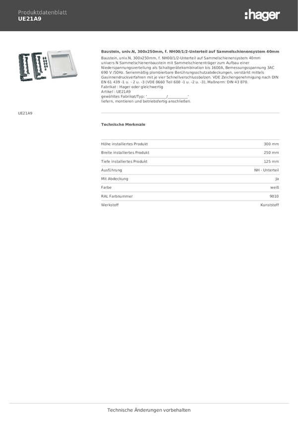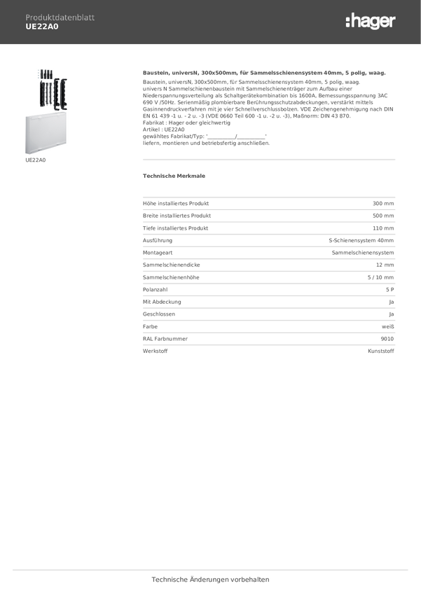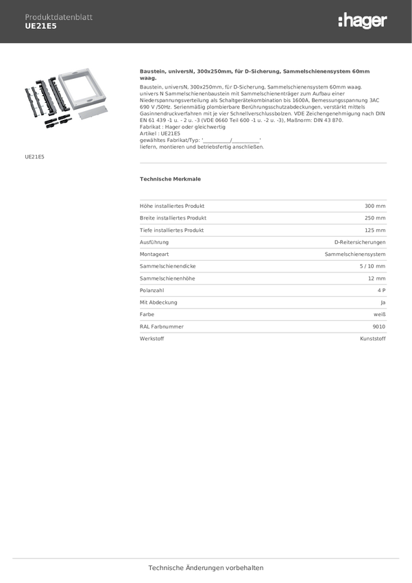 Hager UE21A9 Moduł czysty biały (ral 9010) 5 styków 355 A 1 szt.