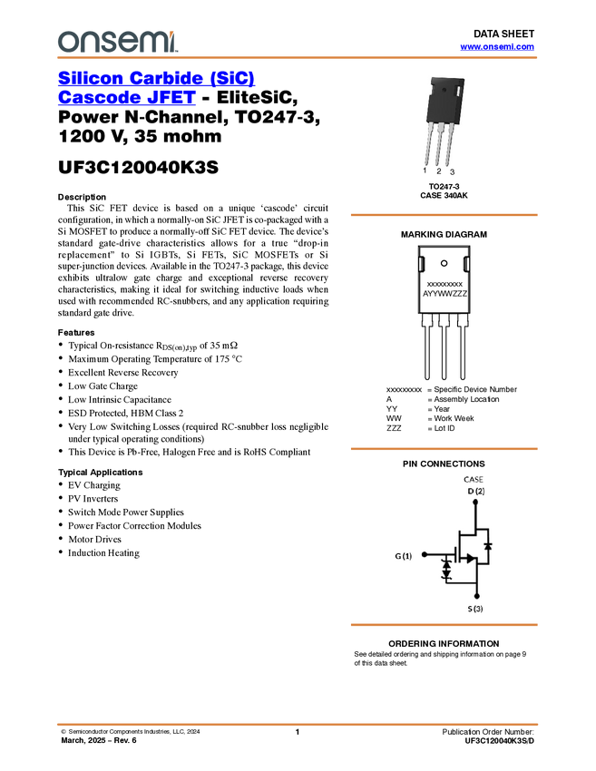 Silicon Carbide (SiC) Cascode JFET - EliteSiC, 35 mohm, 1200V, TO-247-3L