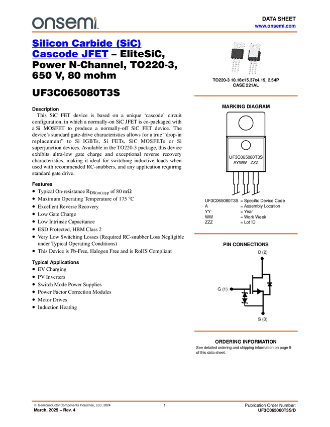 Silicon Carbide (SiC) Cascode JFET - EliteSiC, 80 mohm, 650V, TO-220-3L