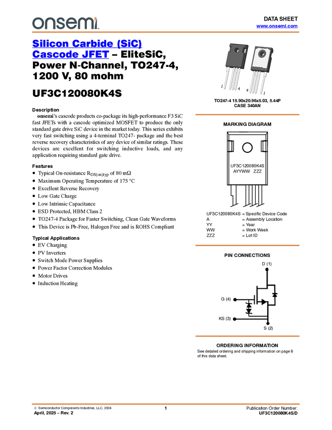 Silicon Carbide (SiC) Cascode JFET - EliteSiC, 80 mohm, 1200V, TO-247-4L