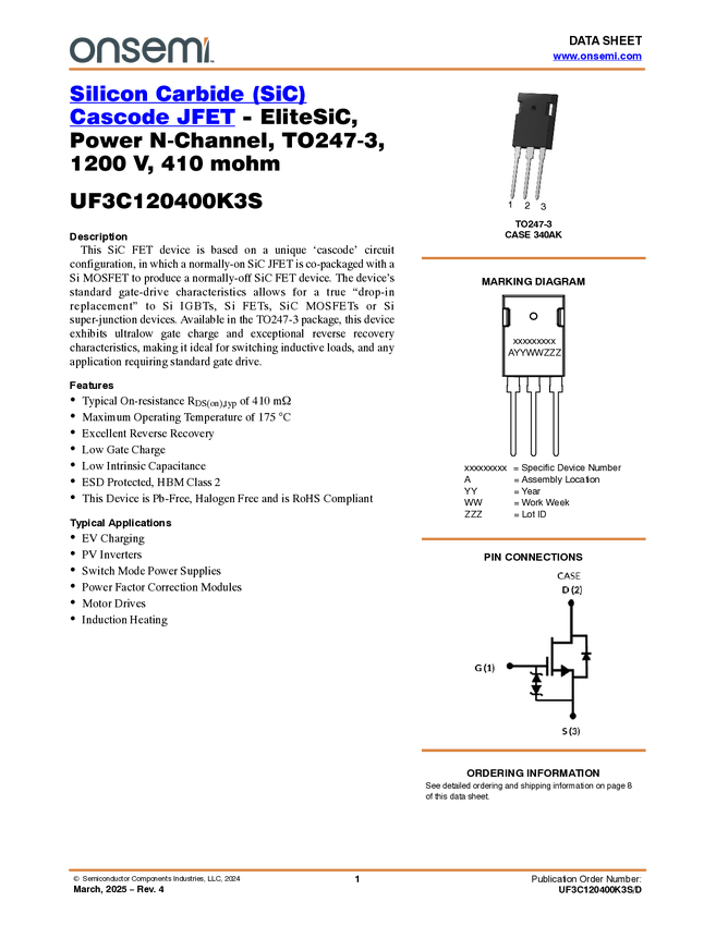 Silicon Carbide (SiC) Cascode JFET - EliteSiC, 410 mohm, 1200V, TO-247-3L