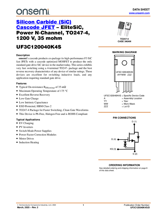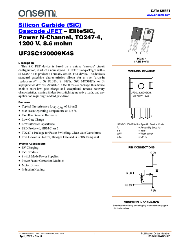 Silicon Carbide (SiC) Cascode JFET - EliteSiC, 9 mohm, 1200V, TO-247-4L