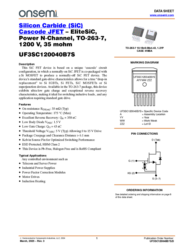 Silicon Carbide (SiC) Cascode JFET - EliteSiC, 35 mohm, 1200V, D2PAK-7L