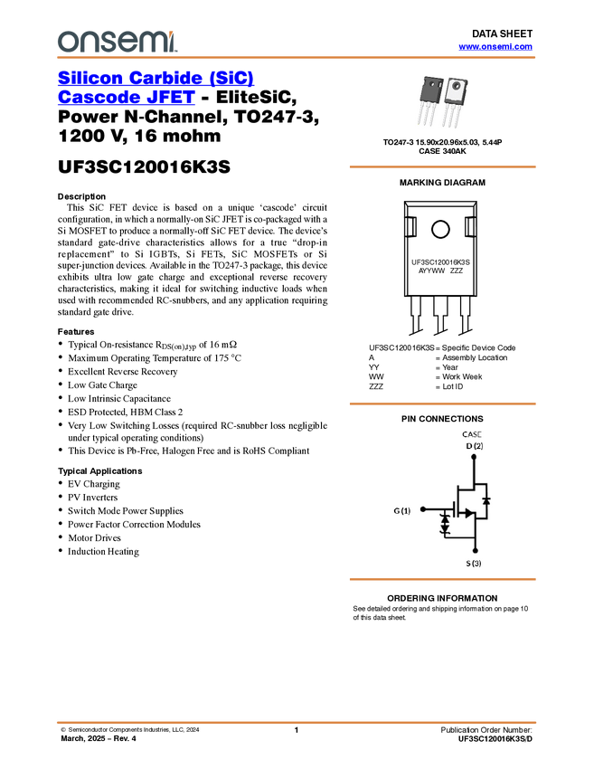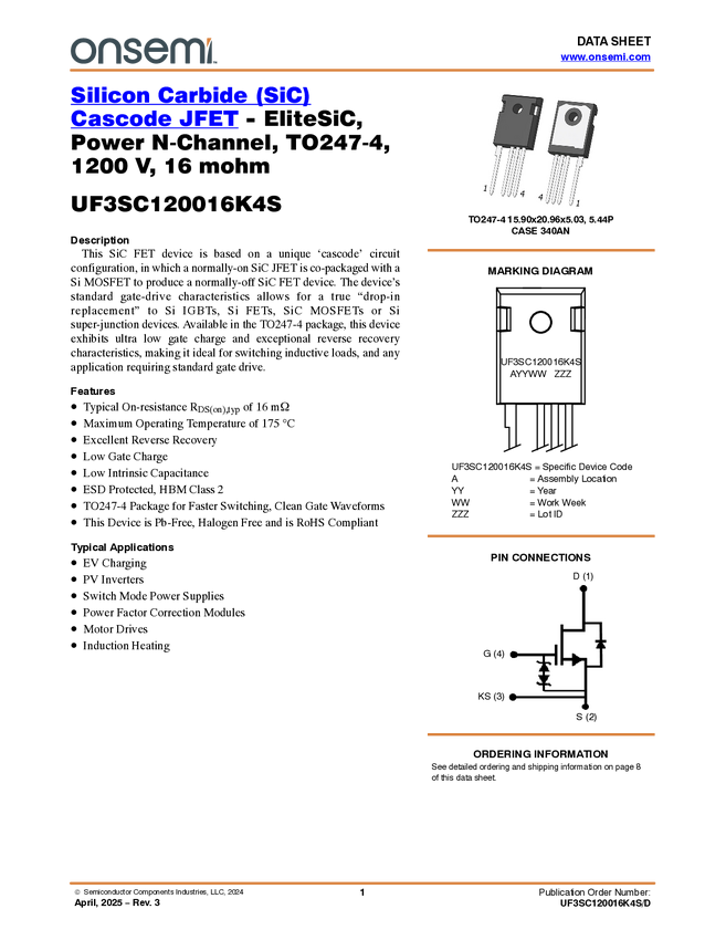 Silicon Carbide (SiC) Cascode JFET - EliteSiC, 16 mohm, 1200V, TO-247-4L