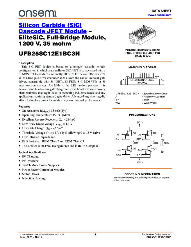 Silicon Carbide (SiC) Cascode JFET Module - EliteSiC, 35 mohm, 1200V