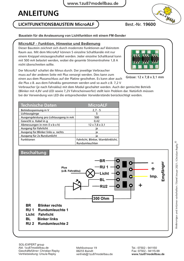 Sol Expert 19600 Moduł do obsługi oświetlenia 2.7 - 5 V (D x S x W) 12 x 7.8 x 3.1 mm