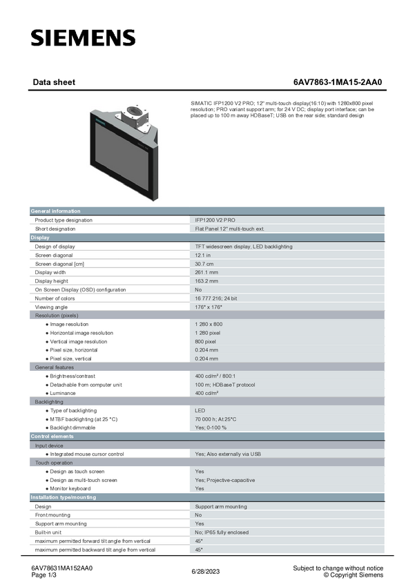 Panel obsługi PLC Siemens 6AV7863-1MA15-2NA0 6AV78631MA152NA0