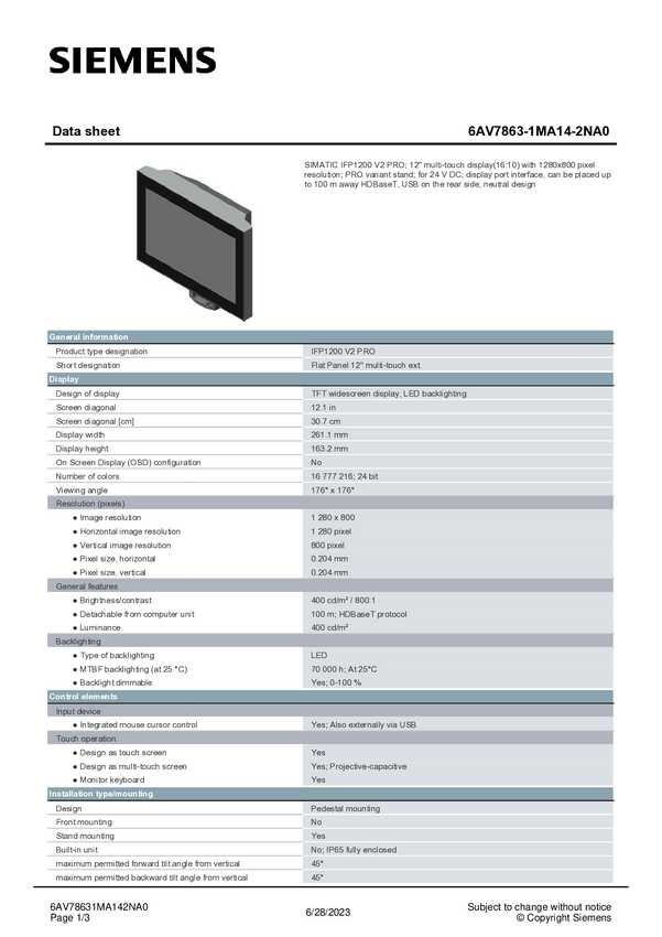 Panel obsługi PLC Siemens 6AV7863-1MA14-2AA0 6AV78631MA142AA0