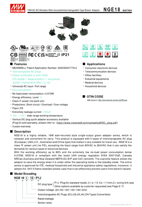 Adapter MEAN WELL AC PLUG-UK4 1 szt.