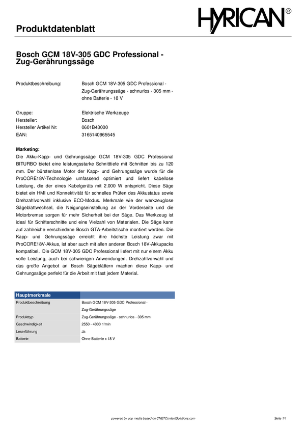 Piła ukosowa i do cięcia kątowego akumulatorowa Bosch Professional BITURBO GCM18V-305 GDC 0601B43000 1 szt.
