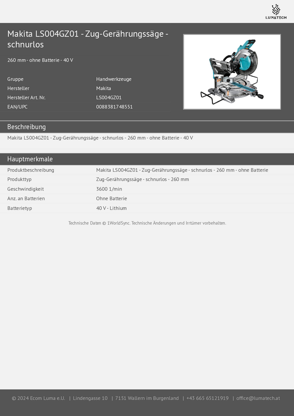 Piła ukosowa i do cięcia kątowego akumulatorowa Makita S_0380_7585868 LS004GZ01 1 szt.