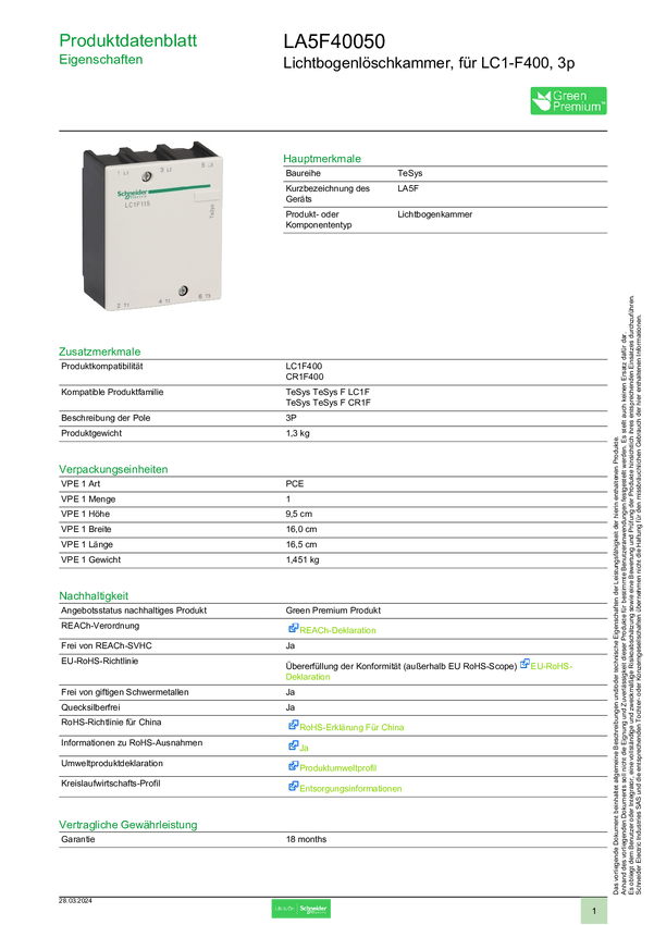 Schneider Electric LA5F40050 Komora łuku 1 szt.