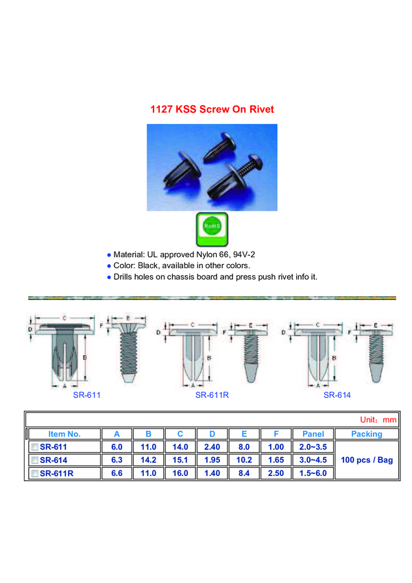 Nit; poliamid; Śr.otw.mont:6mm; czarny; UL94V-2; KSS WIRING; SR-611; RoHS; opakowanie/100szt
