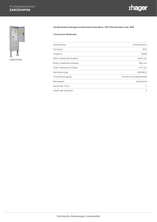 Hager ZAB205AP0A Słup przyłączeniowy oświetlenia ulicznego tworzywo sztuczne 1 szt.