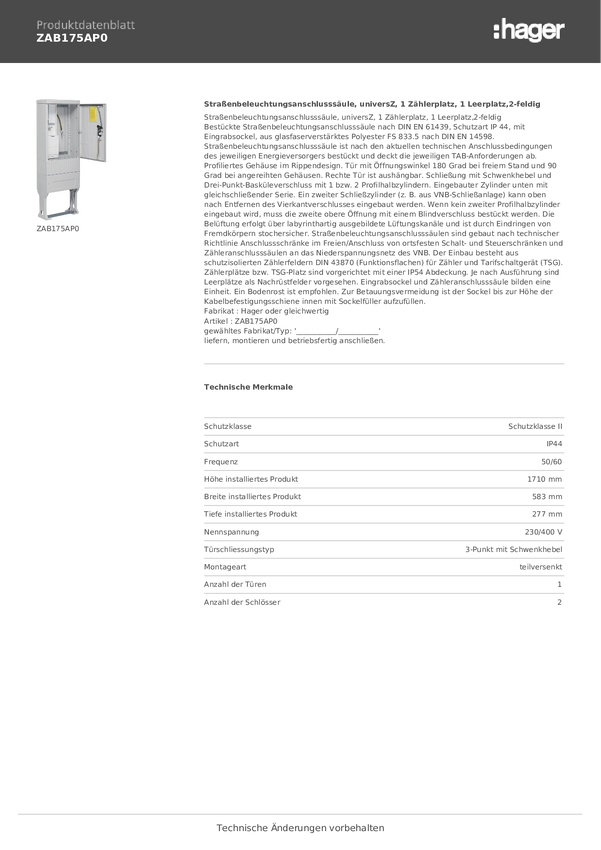 Hager ZAB175AP0 Słup przyłączeniowy oświetlenia ulicznego tworzywo sztuczne 1 szt.