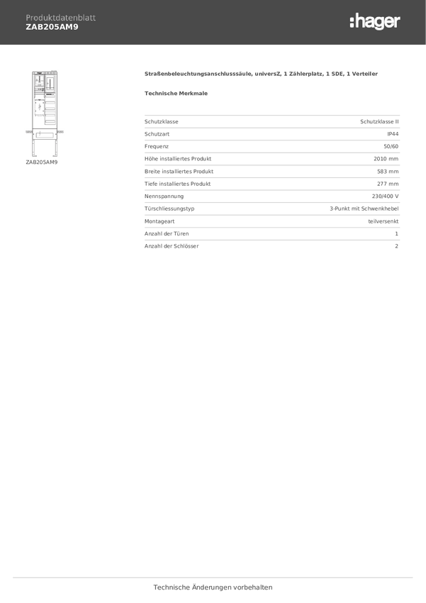 Hager ZAB205AM9 Słup przyłączeniowy oświetlenia ulicznego tworzywo sztuczne 1 szt.
