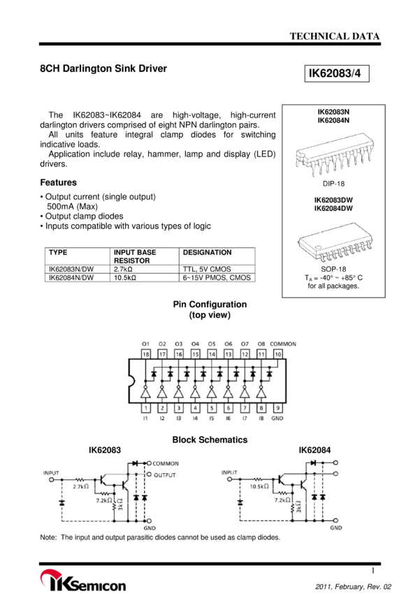 8 par tranzystorów NPN-DARL, TTL/CMOS, DIL18