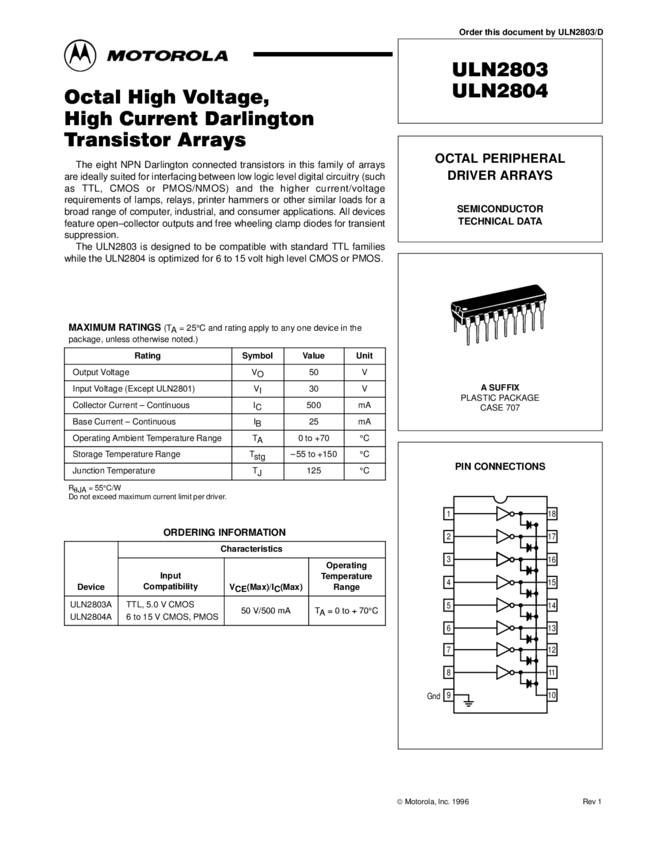 Układ scalony; ULN2804A; driver; darlington; macierz tranzystorowa; 500mA; 50V; 8 kanałów; DIP18; THT; STMicroelectronics; RoHS; opakowanie/100szt