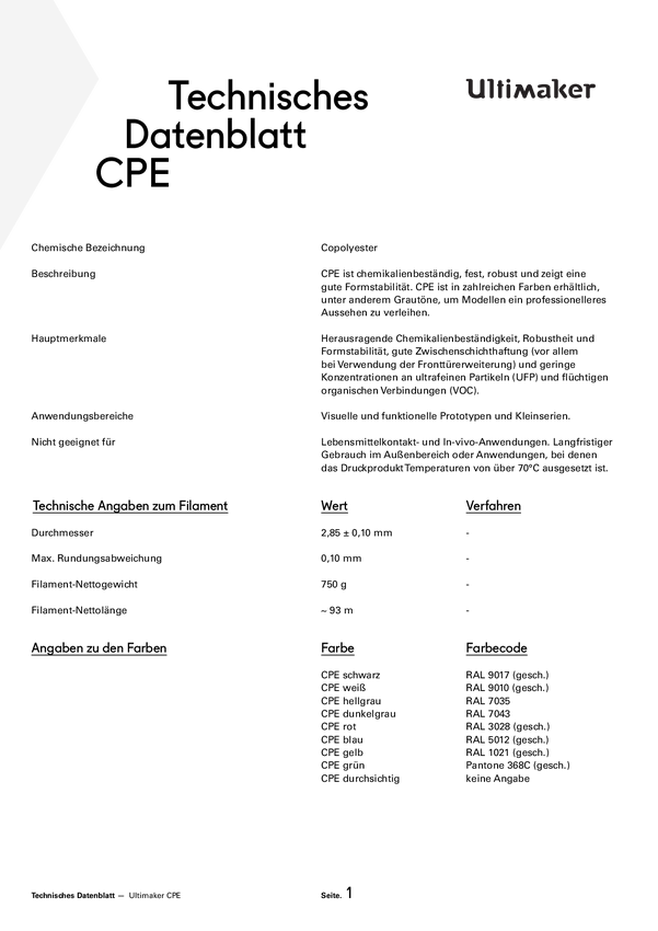 UltiMaker CPE - M0188 Light Gray 750 - 201273 Filament do drukarek 3D CPE 2.85 mm 750 g jasnoszary 1 szt.