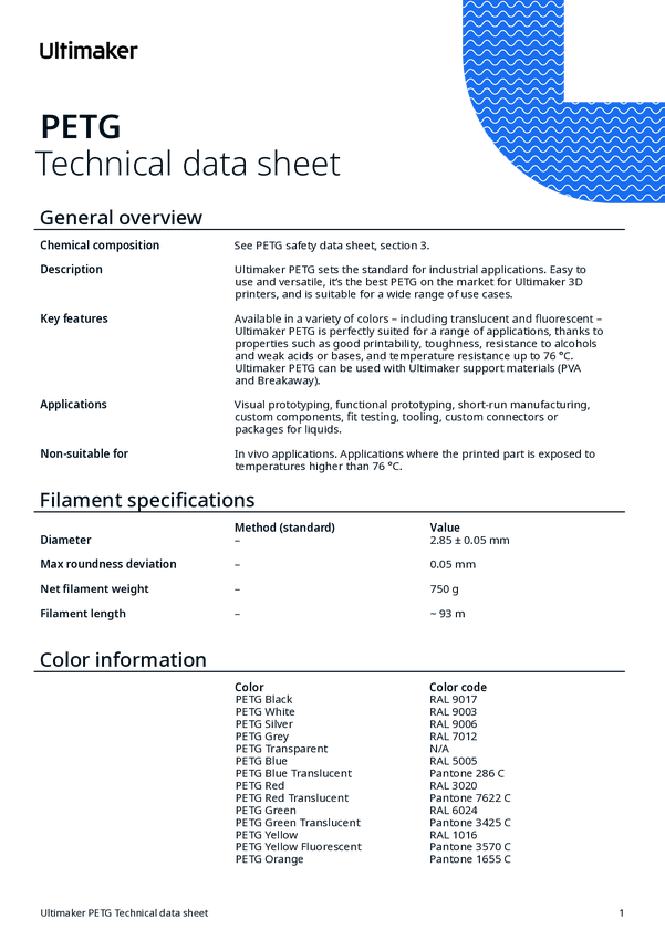 Filament do drukarek 3D PETG UltiMaker 227282, Średnica filamentu: 2.85 mm, 750 g, czarny
