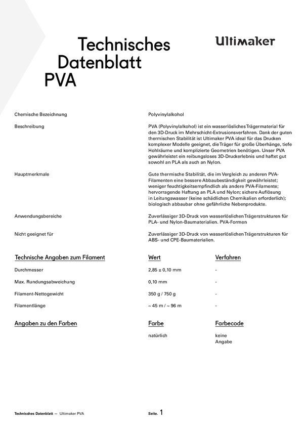 UltiMaker PVA - M0952 Natural 750 - 206127 Filament do drukarek 3D PVA 2.85 mm 750 g przeźroczysty 1 szt.