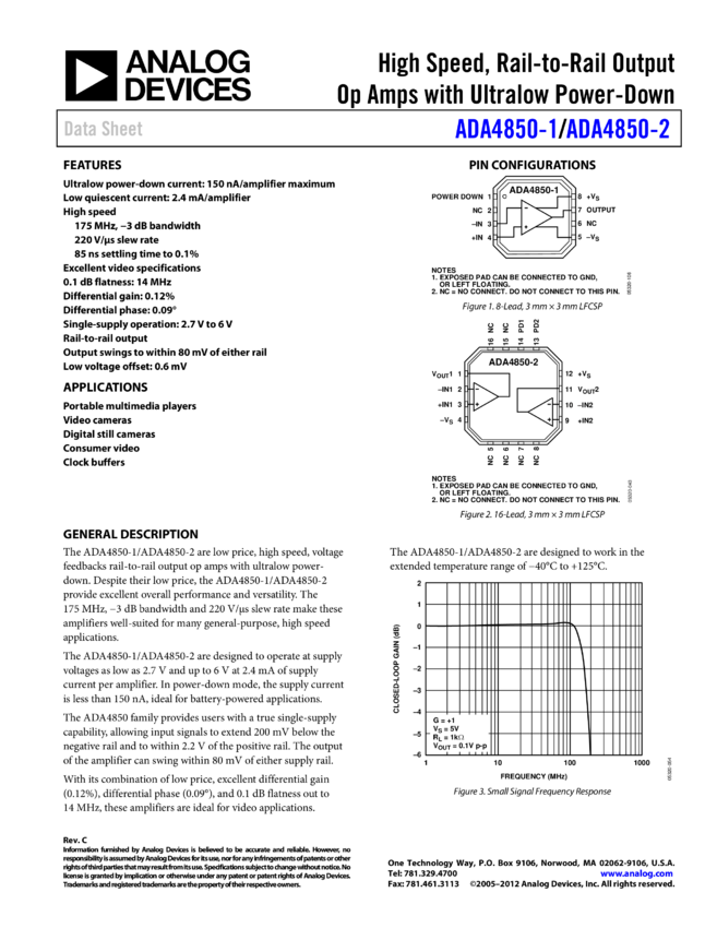 ADA4850-2: High Speed, Rail-to-Rail Output Op Amp with Ultralow Power Down