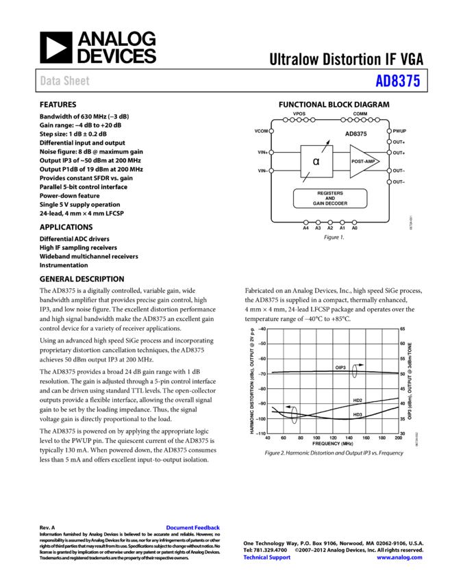 AD8332: Dual VGA with Ultralow Noise Preamplifier and Programmable R