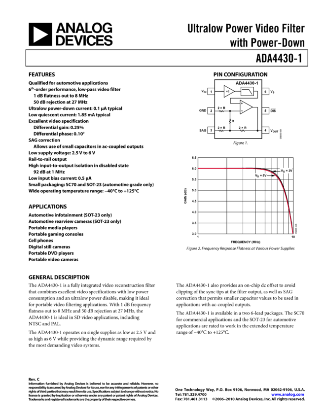 ADA4430-1: Ultralow Power Video Filter with Power-Down