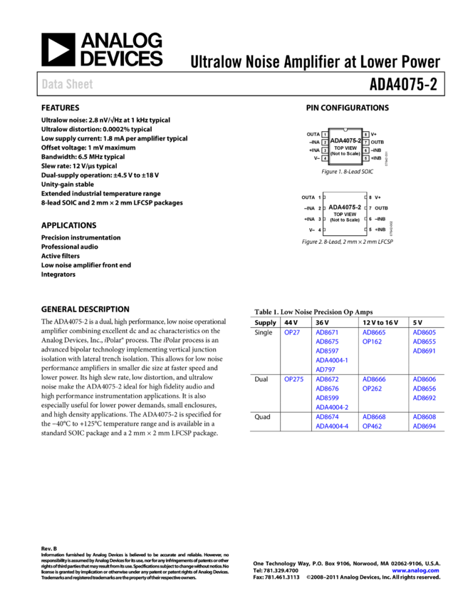 ADA4075-2: Ultralow Noise Amplifier at Lower Power