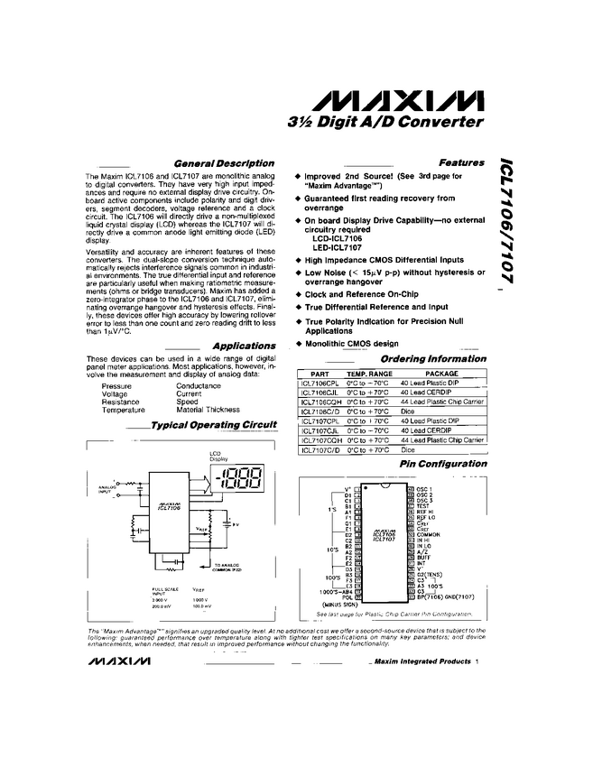 AD converter with 3 1/2 digit lcd DIP40 Do wyświetlacza LCD Nieprodukowane, możemy proponować odpowiedniki innych firm