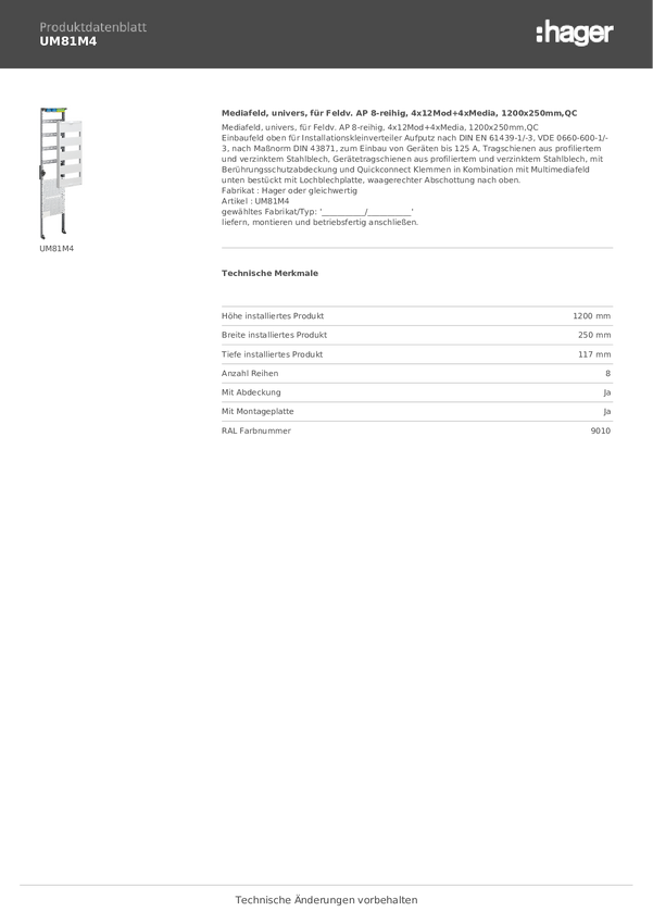 Hager UM81UM4 Pole multimedialne 1 szt.