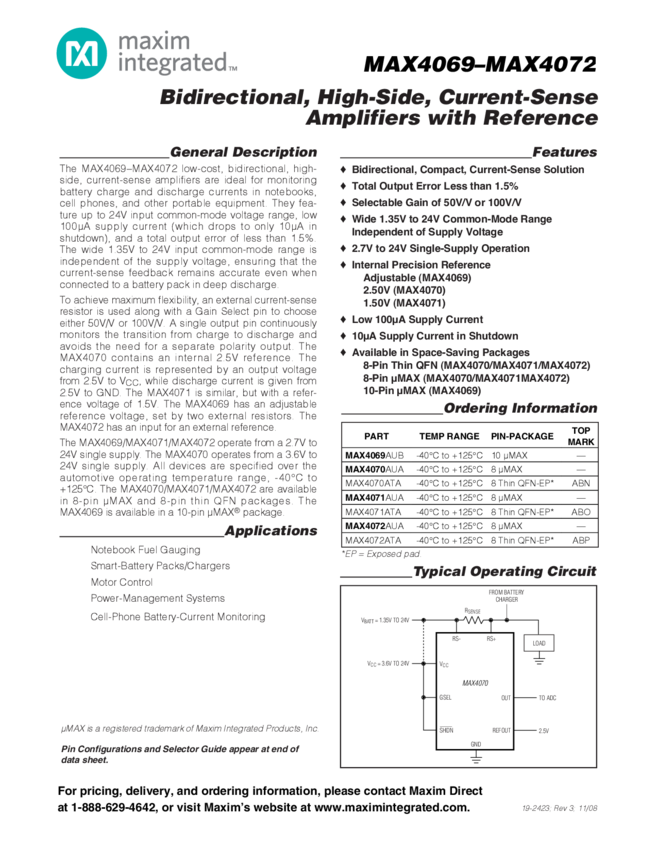 SP Amp Current Sense Amp Single 24V 8-Pin uMAX